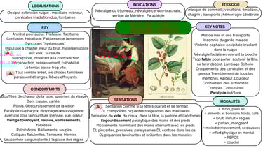Pour ce qui est des symptômes physiques, Cocculus balaye tout le spectre des pathologies du système sensitif et moteur : des tremblements aux convulsions en passant par les crampes, de l'engourdissement à la paralysie. Dans ses symptômes nerveux Cocculus indicus ressemble beaucoup à Gelsemium et à Ignatia. Difficile de synthétiser tout cela dans une carte mentale.